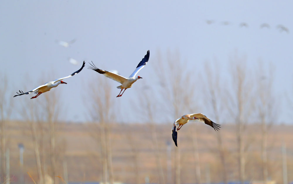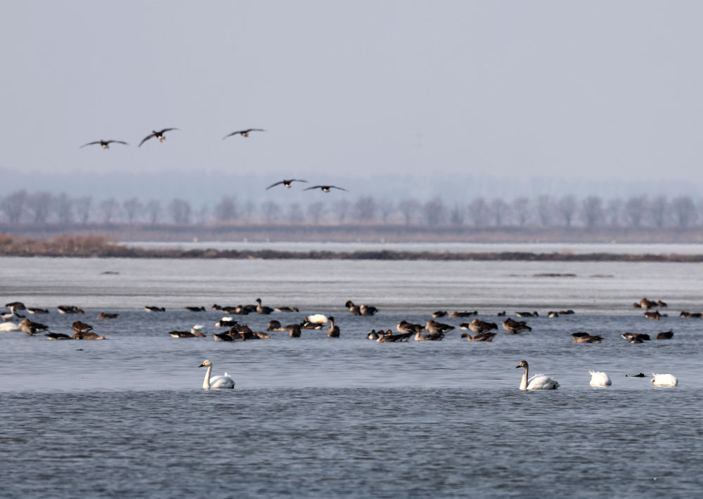 3月20日在沈阳市康平县卧龙湖拍摄的候鸟。新华社记者 李钢 摄
